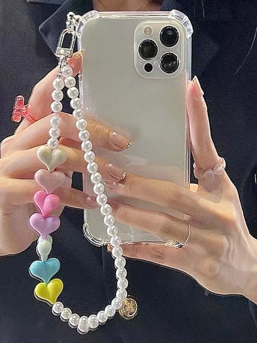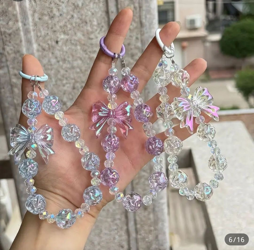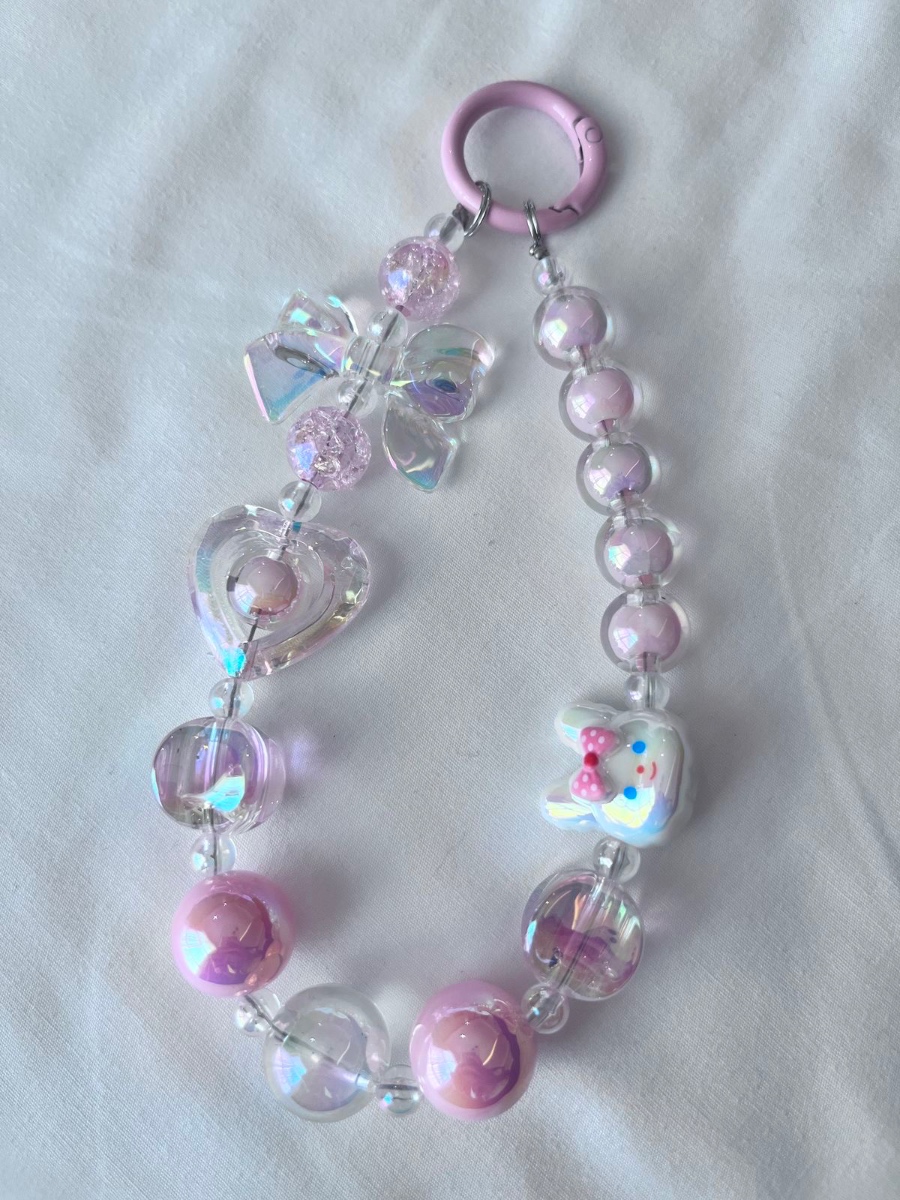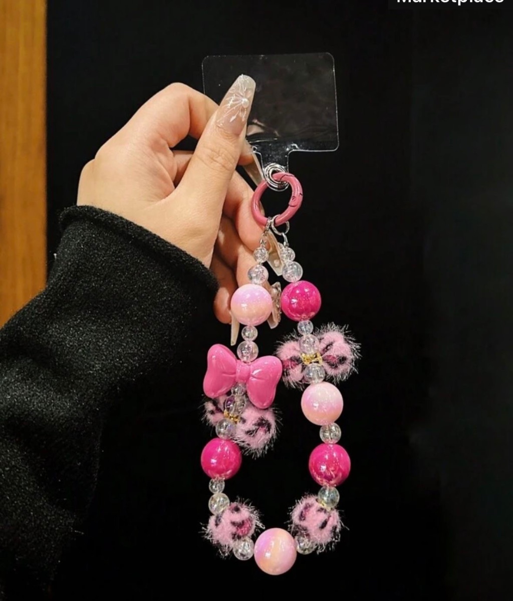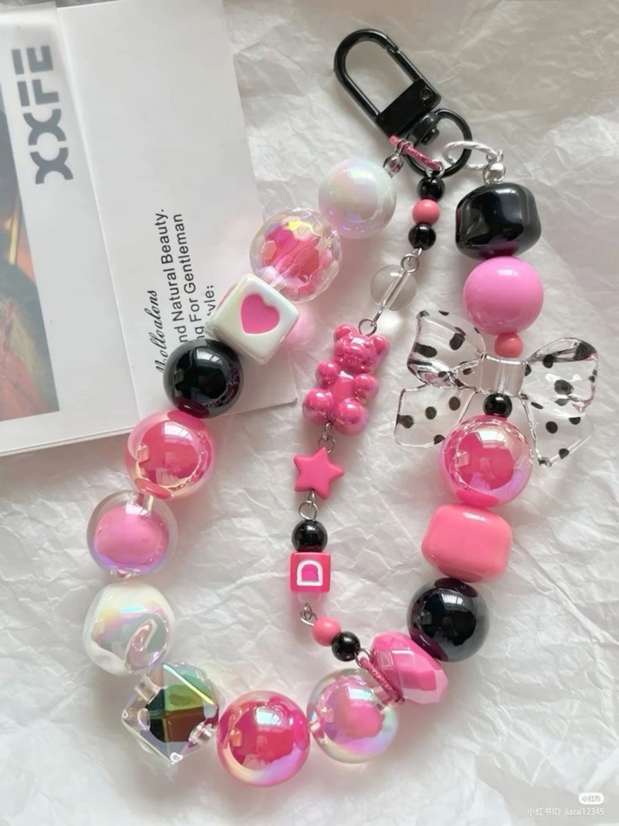 Ajoutez une touche de douceur et de style à votre téléphone avec cette accroche téléphone ultra-mignonne. Composée de perles brillantes roses, noires et nacrées, elle mélange charme et originalité avec ses détails nœud transparent à pois, ourson, étoile et cœur.