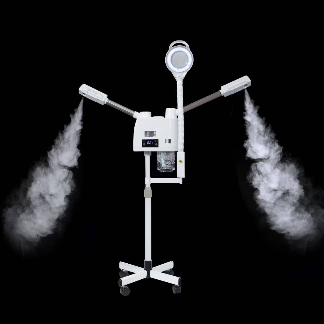 Pour le produit : Appareil Professionnel de Soin du Visage 2-en-1 avec Vaporisateur Facial et Lampe Loupe LED sur Pied, Équipement Esthétique pour Nettoyage Profond, Hydratation et Examen de la Peau, Mobile et Réglable