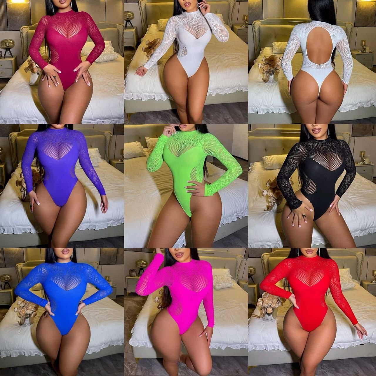 Pour le produit : Body Femme Sexy en Maille Transparente à Manches Longues et Col Montant, Justaucorps Moulant Élégant pour Soirée et Club, Lingerie Fine et Confortable Multi-Couleurs