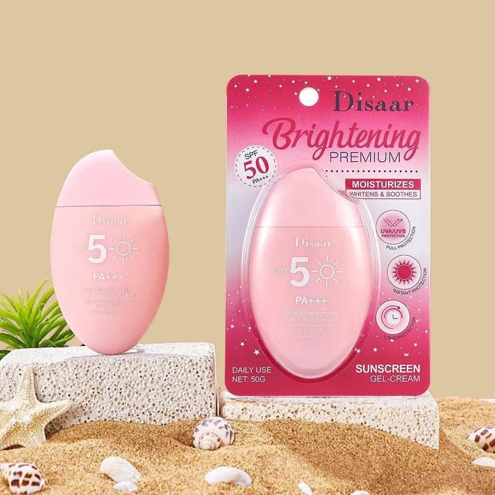 Crème Solaire Visage et Corps Disaar Brightening Premium SPF 50 PA+++, Gel-Crème Hydratant Éclaircissant Anti-UVB/UVA, Protection Solaire Quotidienne Longue Durée et Apaisante pour Peau Sensible 50g