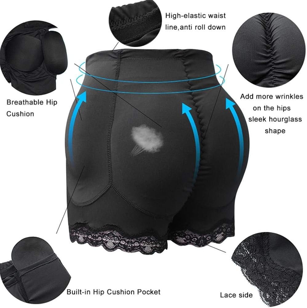 Culotte Rembourrée Push-Up Fessier Invisible, Shorty Gainant Rehausseur de Fesses pour une Silhouette Galbée et Naturelle, Confortable avec Dentelle (Noir)
