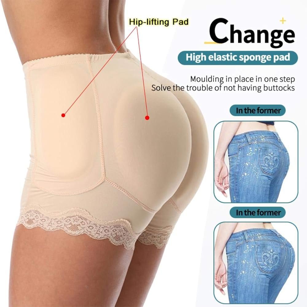 Pour le produit : Culotte Rembourrée Push-Up Fessier Invisible, Shorty Gainant Rehausseur de Fesses pour une Silhouette Galbée et Naturelle, Confortable avec Dentelle (Noir)