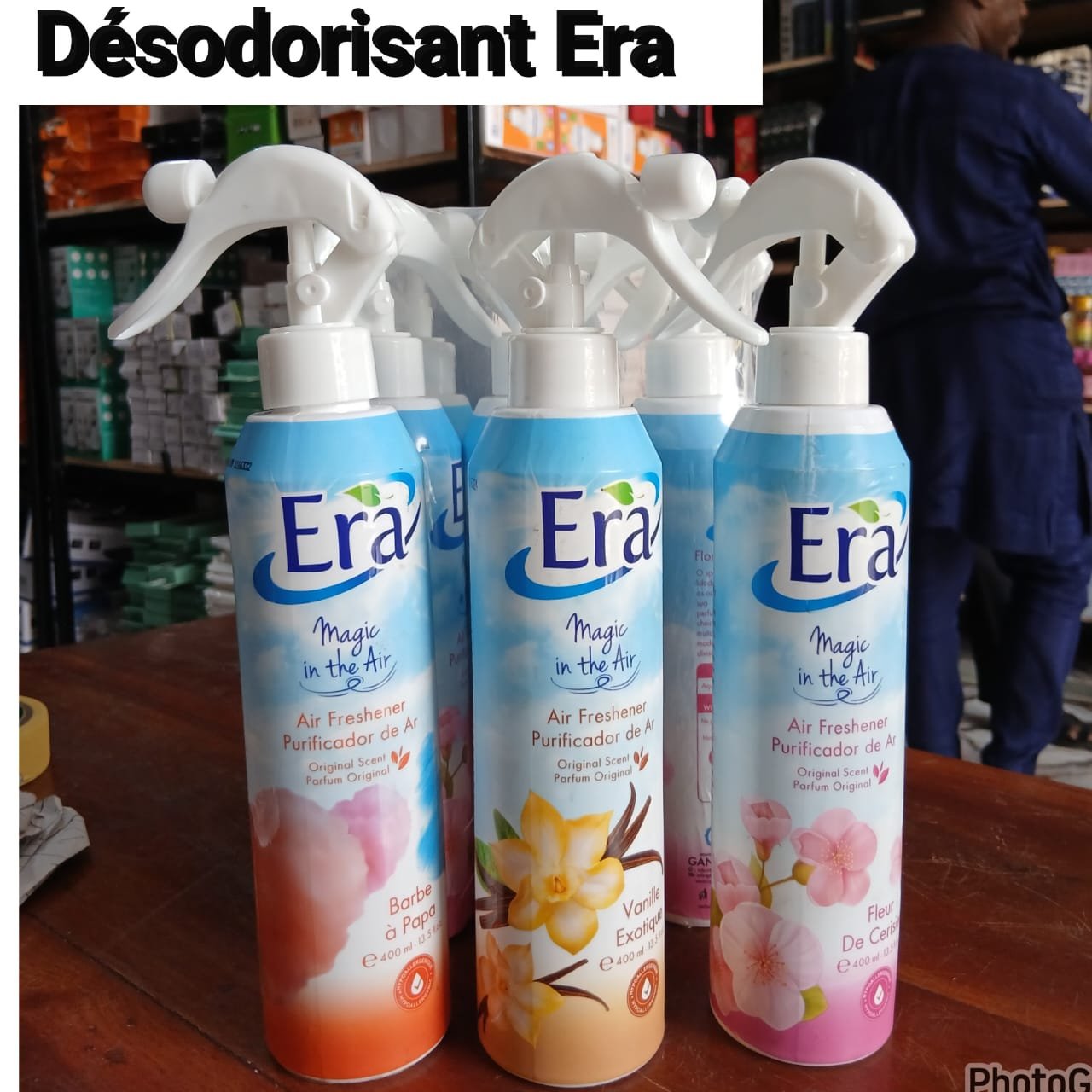 Transformez instantanément l’atmosphère de votre intérieur avec le Désodorisant Era Magic in the Air 400ml. Conçu pour apporter une touche de fraîcheur et d’élégance à chaque pièce, ce purificateur d’ambiance est votre allié idéal pour combattre les mauvaises odeurs et créer une ambiance accueillante et agréable. Que ce soit après la cuisine, pour rafraîchir une chambre ou simplement pour parfumer votre espace de vie, Era Magic in the Air diffuse des fragrances envoûtantes qui durent. Sa formule spéciale garantit une élimination efficace des odeurs persistantes, laissant derrière elle un sillage délicat et durable. Idéal pour le climat d’Afrique de l’Ouest, il aide à maintenir une sensation de propreté et de fraîcheur, même dans les conditions les plus exigeantes. Choisissez parmi nos parfums irrésistibles : la douceur gourmande de la Barbe à Papa, l’exotisme ensoleillé de la Vanille Exotique, ou la délicatesse florale de la Fleur de Cerisier. Chaque spray est une invitation au bien-être, transformant votre quotidien en une expérience sensorielle unique.