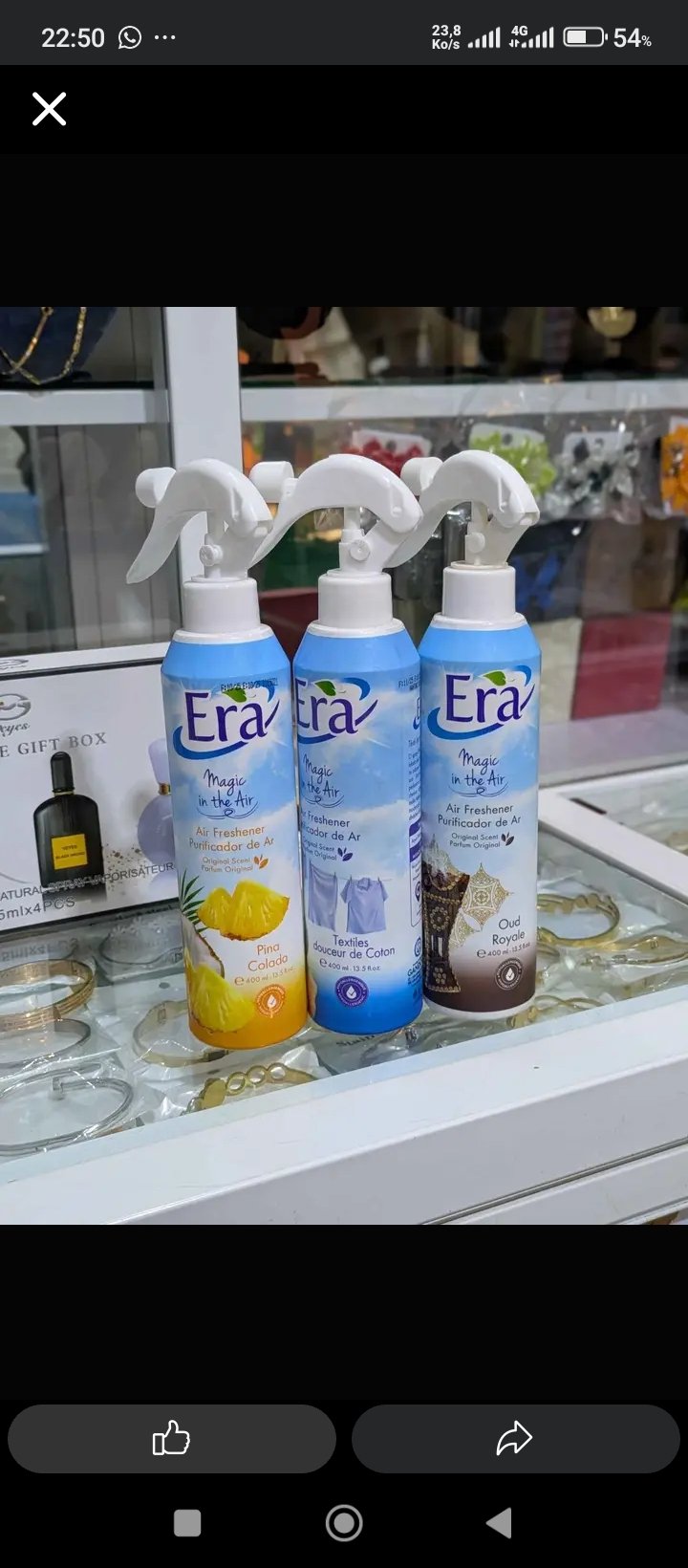 - Large Choix de Parfums : Trois fragrances distinctes pour s’adapter à toutes les préférences et humeurs. Que vous aimiez les notes sucrées, exotiques ou florales, il y a un parfum Era pour vous.