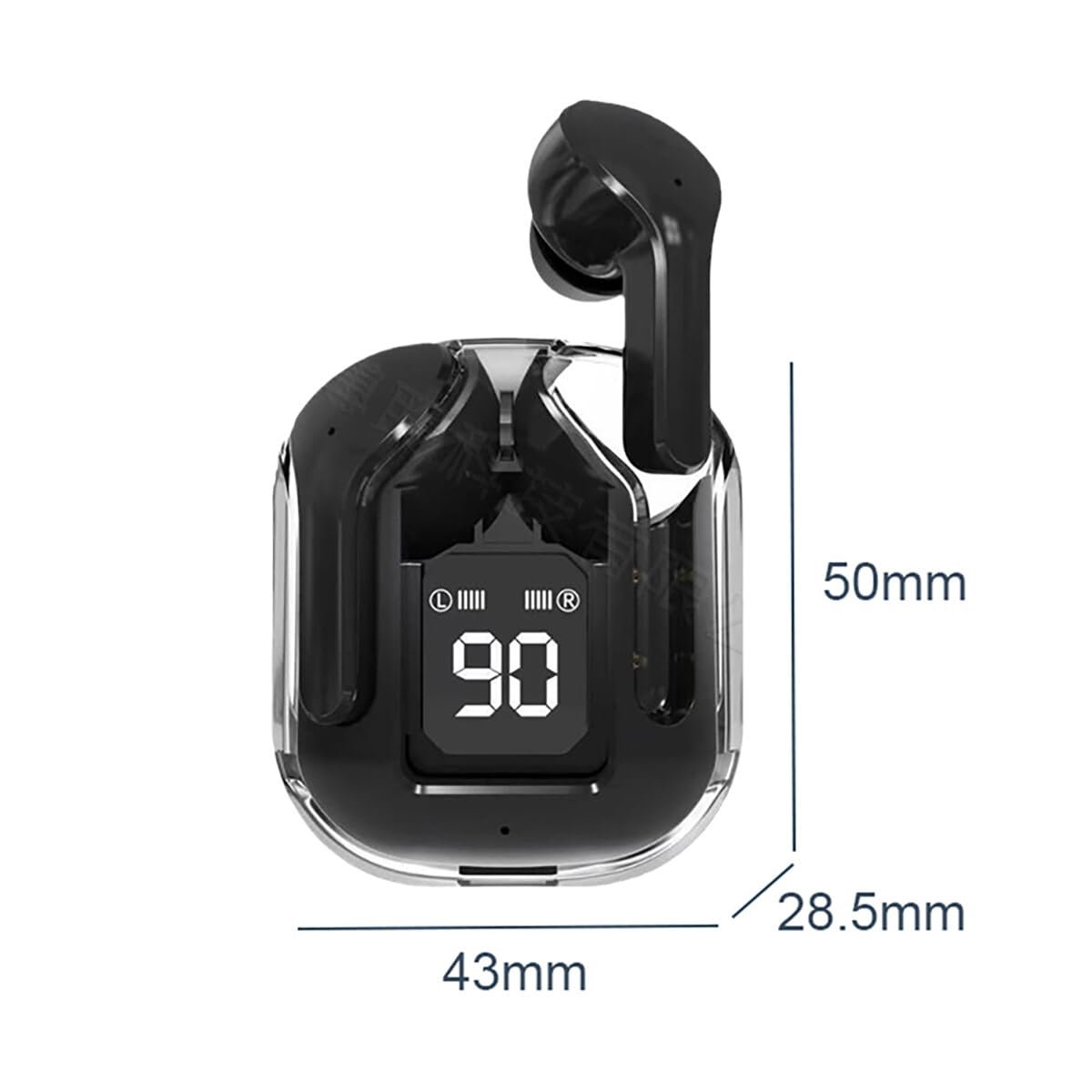 - Boîtier de Charge Numérique LED: Affiche le pourcentage de batterie du boîtier et l’état de charge de chaque oreillette (L/R).