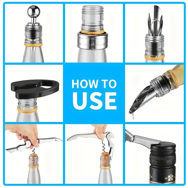 Pour le produit : Ensemble Tir Bouchon d'Ouvre-Bouteilles de Vin, Kit de 5 Pièces en Acier Inoxydable pour Vins Rouges et Blancs