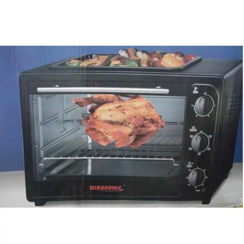 Four électrique Eurosonic 22L avec fonction barbecue et rôtissoire – ES-9022- Noir Le four électrique Eurosonic est doté de la technologie la plus sûre, économe en énergie et facile à utiliser, pour une cuisson plus saine. Il est livré avec une minuterie intégrée d’une durée de 60 minutes, une fonction de barbecue sur le dessus et une vue complète de la fenêtre.Ce four Eurosonic dispose d’une fonction de rôtisserie, qui aide à faire tourner le poulet dans le four pendant la rôtissage, sans que vous changiez la position du poulet. Si vous recherchez le confort et la facilité dans la cuisine, optez pour ce four Eurosonic d’une capacité de 22 litres. Ce four polyvalent et compact est idéal pour les maisons de vacances, les logements étudiants et les studios, ou simplement comme appareil de cuisson supplémentaire pour aider à préparer les repas de grands groupes de personnes. avec cadrans pour la température (jusqu’à 250 ° C), la durée (jusqu’à 60 minutes) et les cinq fonctions de cuisson. Vous pouvez cuire les mêmes types d’aliments que vous le feriez dans un four conventionnel, mais le mini-four à chauffage rapide vous fera économiser du temps et de l’argent sur vos factures d’énergie!