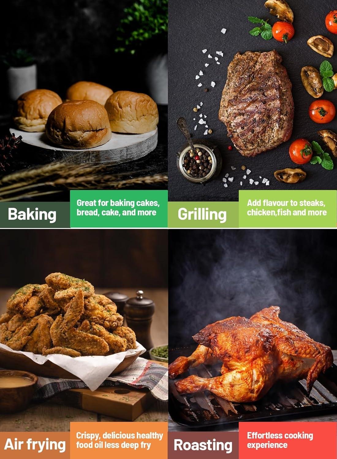 - Technologie de Cuisson Avancée : Circulation d’air chaud à 360° pour une cuisson uniforme et rapide.