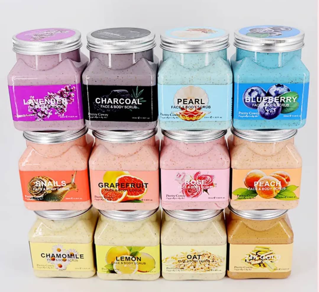 Gommage Exfoliant Corps et Visage Multi-Parfums Naturels, Soin Peeling Doux pour Peau Éclatante, Élimine Cellules Mortes et Impuretés, Hydratant et Purifiant pour Hommes et Femmes, Grand Format