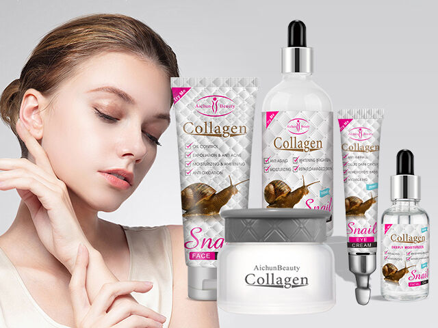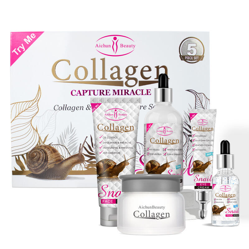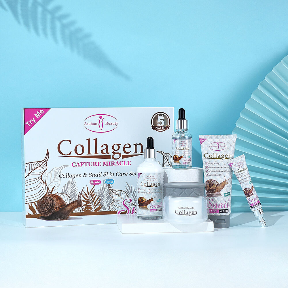 Pour le produit : Kit de Soin Visage et Corps Aichun Beauty au Collagène et Bave d'Escargot, Routine Beauté Complète 5 Pièces Anti-âge Hydratante et Éclaircissante pour Peau Jeune, Ferme et Lumineuse