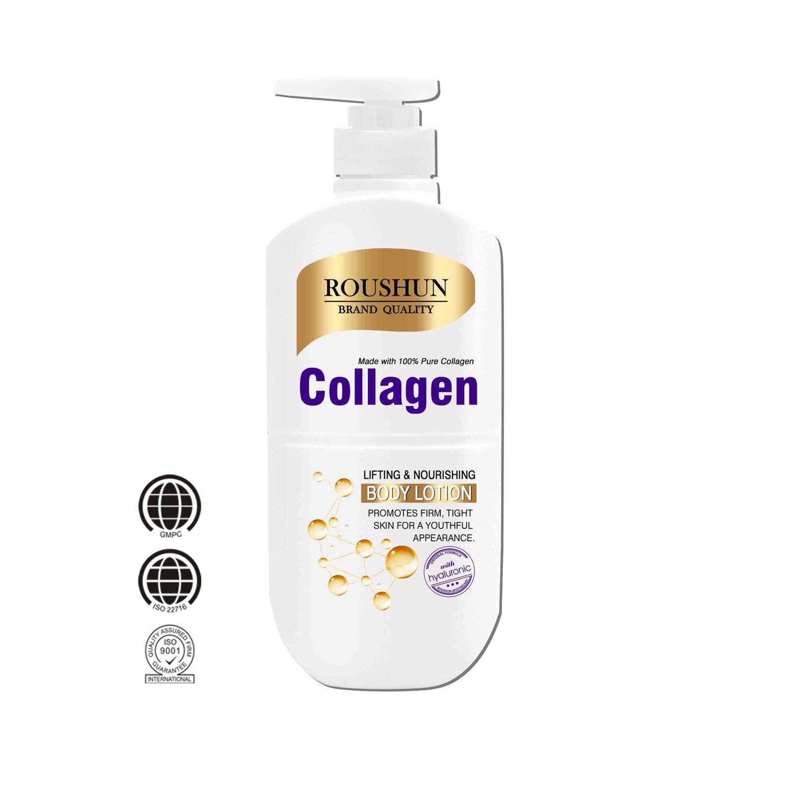 Lotion Corporelle Raffermissante au Collagène ROUSHUN, Soin Hydratant Anti-Âge avec Vitamine E, Réduit Rides et Ridules pour une Peau Jeune et Éclatante, Émulsion Nourrissante et Liftante Flacon Pompe