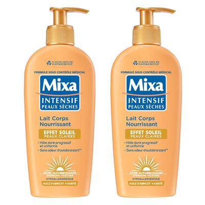 Pour le produit : Mixa Lait Corps Nutritif Satinant Intensif Peaux Sèches et Mates à Foncées, Hydratant Adoucissant au Karité Pur, Redonne de l'Éclat, Format 400ml Hypoallergénique