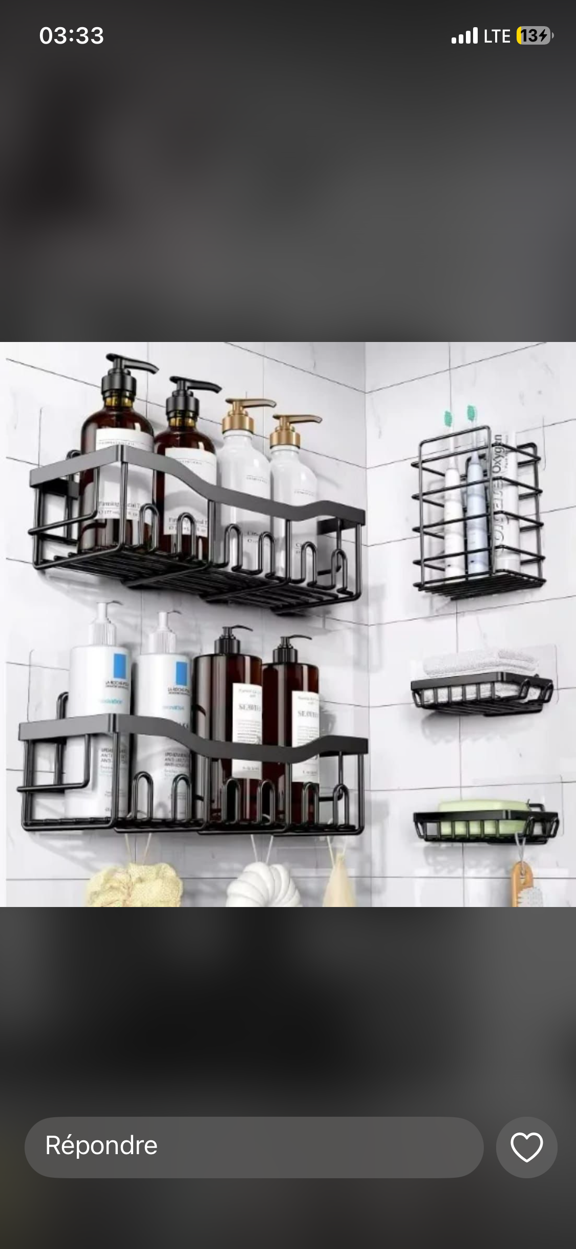 Pour le produit : Organisateur de Douche Mural Adhésif Sans Perçage, Étagère de Rangement pour Salle de Bain, Panier Porte-Shampooing et Savon Anti-Rouille, Design Moderne Noir Mat pour Produits de Bain