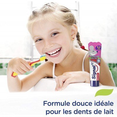 La formule douce et légèrement moussante du dentifrice Signal est particulièrement adaptée aux gencives sensibles des enfants.En outre ,il est sans agent de mousse SLS et contient 97% d’ingrédients d’origine naturelle .