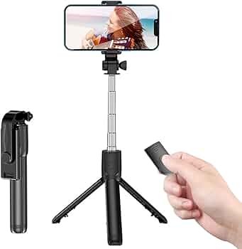Pour le produit : Perche à Selfie Trépied Téléphone avec Lumière LED et Télécommande Bluetooth, Support Stabilisateur Extensible 360° pour Vlog, Streaming, Photos et Vidéos, Compatible Smartphones Universels, Portable et Compact