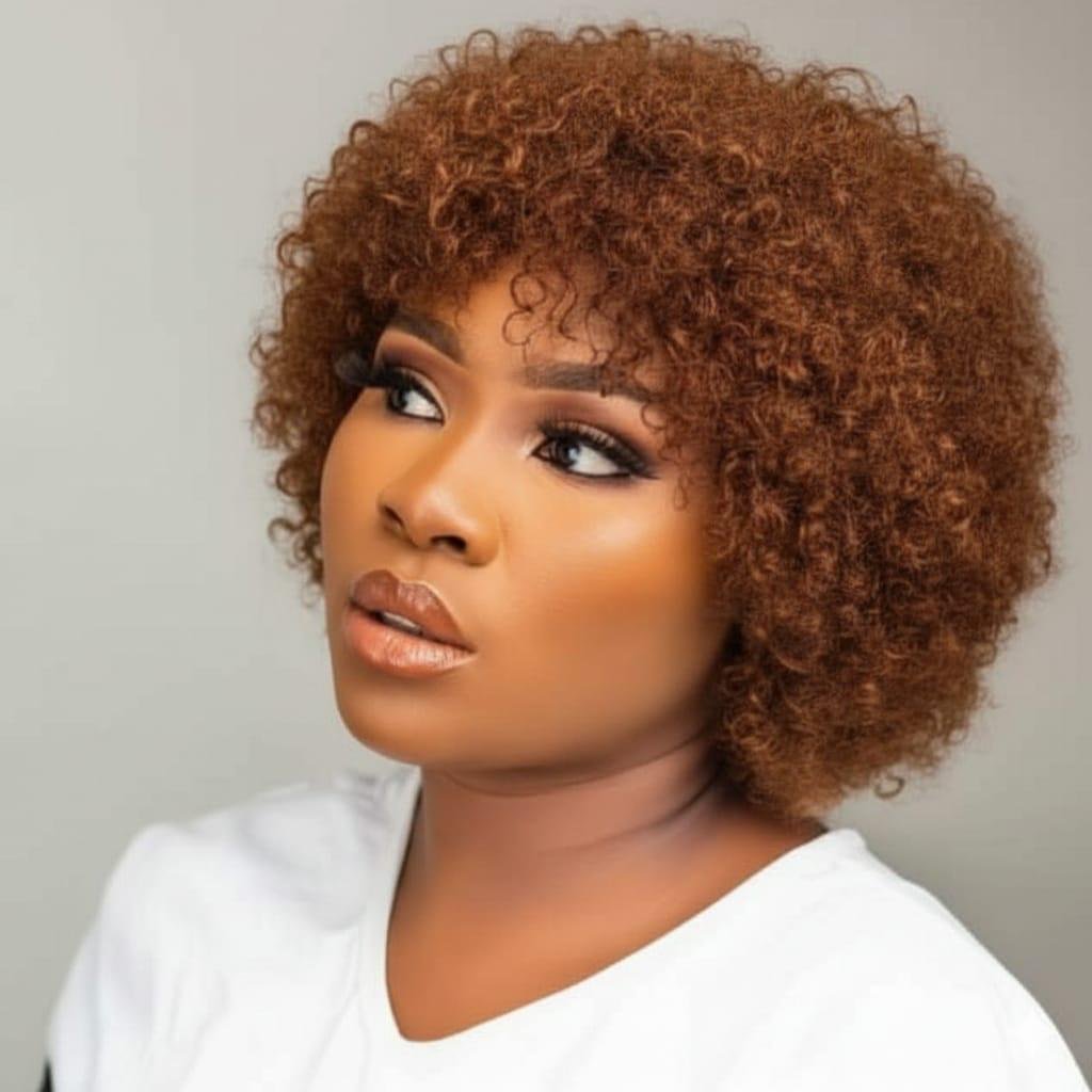 Perruque Afro Bouclée Courte Marron Auburn, Tissage Kinky Naturel pour Femme, Volume et Style Tendance Facile à Entretenir, Résistante à la Chaleur et à l’Humidité