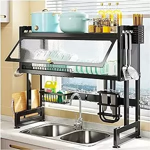 - PORTE D’ARMOIRE DE TYPE RABATLe support à vaisselle au-dessus de l’évier est suffisamment durable. Le couvercle rabattable n’occupe pas d’espace pour un rangement pratique et la grande capacité peut stocker toute la vaisselle. La conception au-dessus de l’évier peut directement drainer l’eau dans l’évier, plutôt que sur le dessus de la table, pour éviter efficacement l’accumulation d’eau.