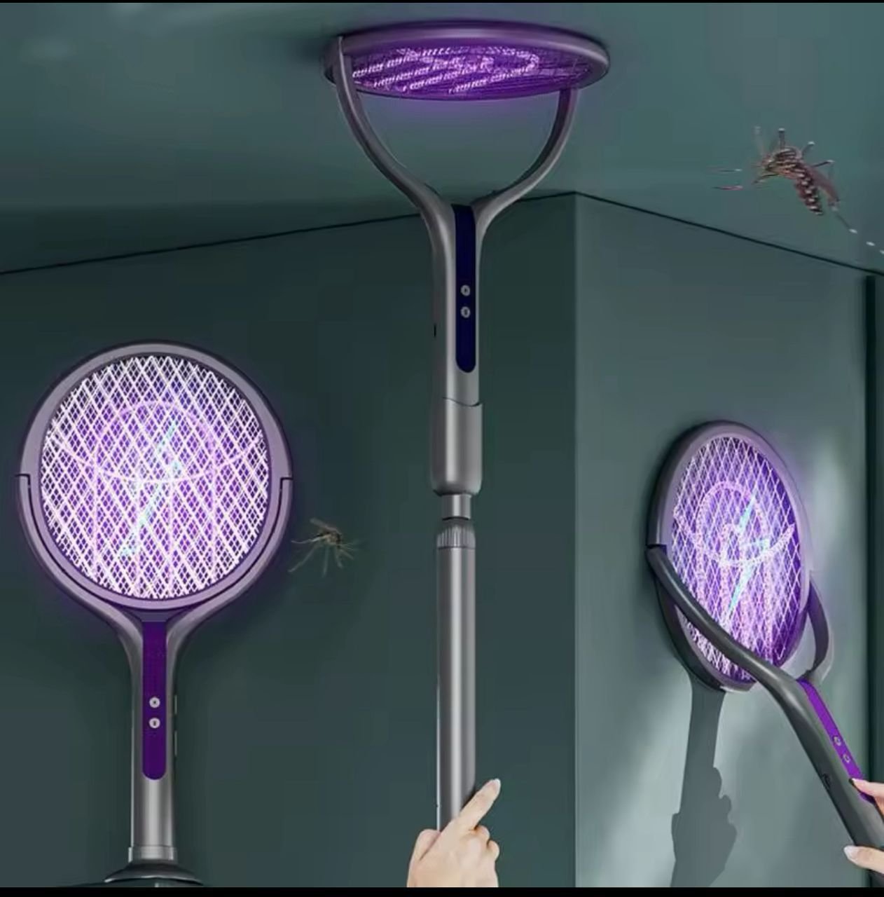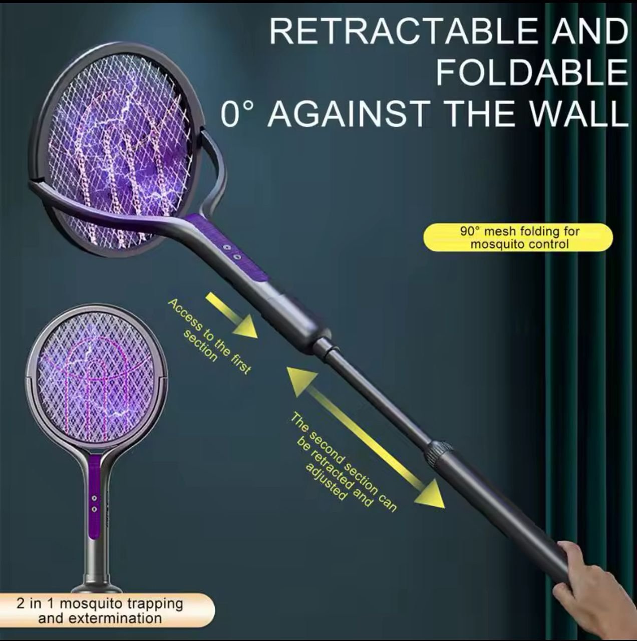 Pour le produit : Raquette Anti-Moustique Électrique Rechargeable USB 2 en 1, Lampe UV Tue-Insectes Volants avec Support et Manche Extensible, Destructeur de Moustiques Silencieux pour Nuits Paisibles et Protection Optimale