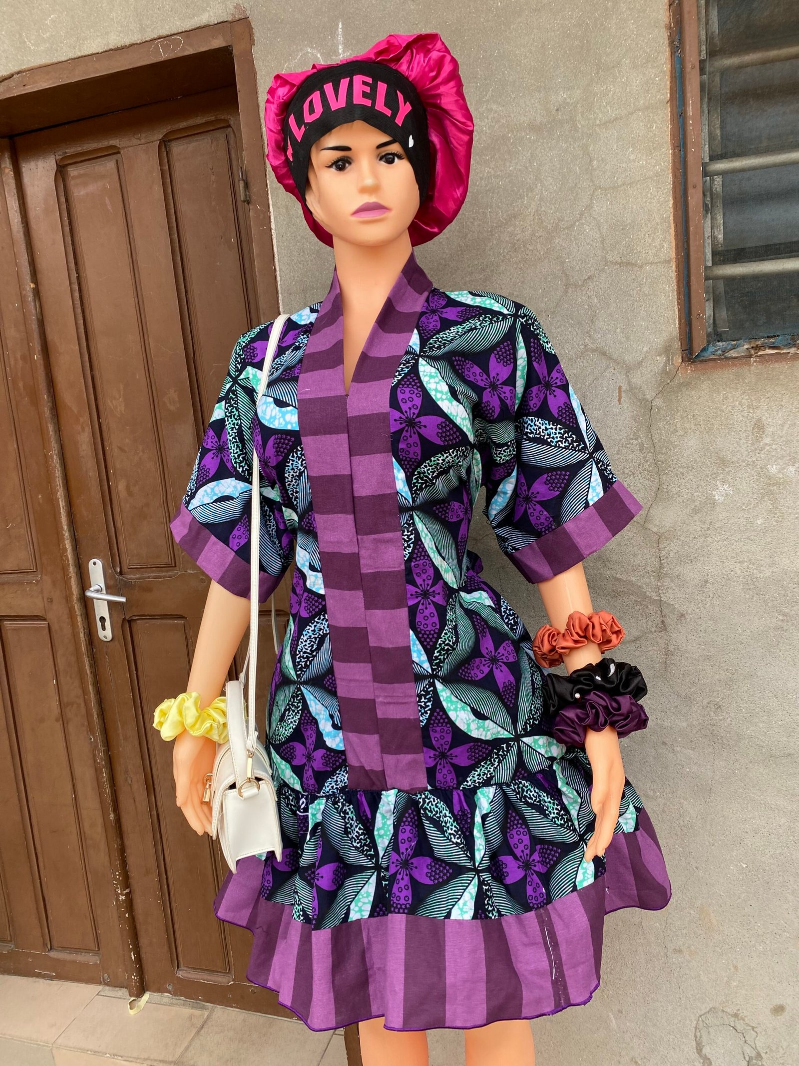 Plongez dans l’univers vibrant de la mode africaine avec notre sublime Robe Tunique Femme en Pagne Wax Africain. Conçue pour la femme moderne qui valorise l’élégance, le confort et l’authenticité, cette tenue est une véritable célébration des motifs traditionnels avec une touche contemporaine. Son design unique, orné de motifs floraux et géométriques dans des teintes de violet profond, de turquoise éclatant et de noir élégant, vous assure un look distinctif et captivant. Parfaite pour une sortie décontractée, un événement spécial ou simplement pour ajouter une touche de couleur à votre quotidien, cette robe tunique est un incontournable de votre garde-robe. Accompagnée d’un bonnet de nuit en satin « Lovely », elle offre non seulement un style impeccable mais aussi une protection optimale pour vos cheveux, préservant leur hydratation et réduisant les frottements pendant votre sommeil. C’est le mariage parfait entre la tradition africaine et les besoins de la femme d’aujourd’hui.