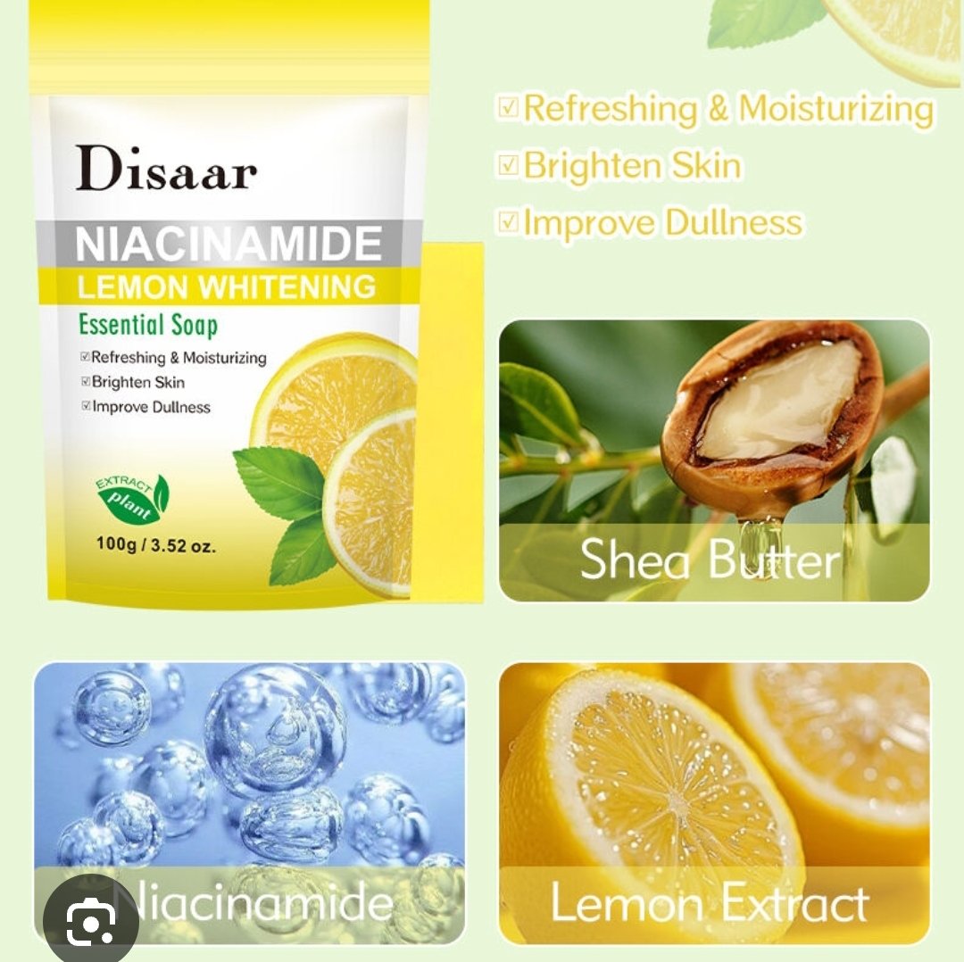 Le savon contient de la niacinamide, connue pour ses bienfaits sur la peau tels que l’amélioration des pores, de la texture et de l’uniformité du teint.