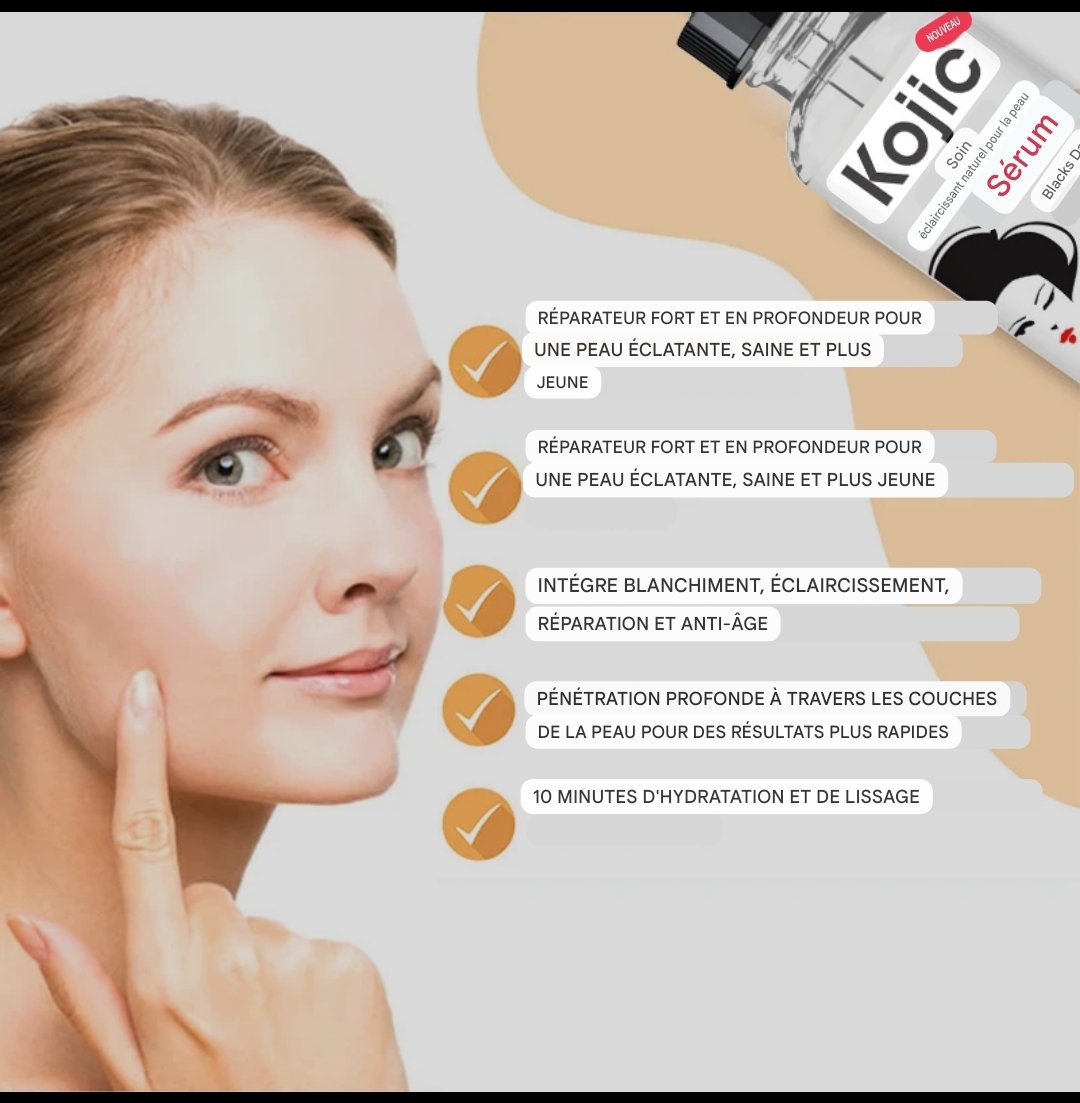 Pour le produit : Sérum éclaircissant à l'acide kojique un soin de la peau qui cible les taches brunes et le teint inégal.