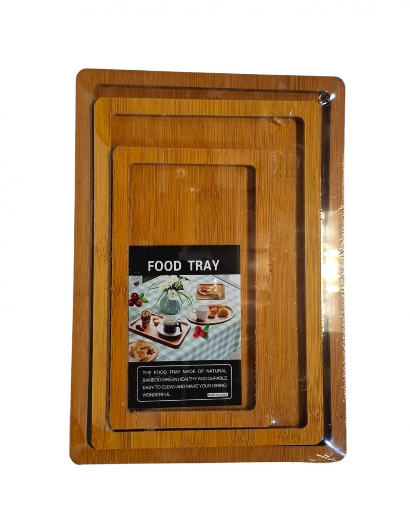 Pour le produit : Set de 3 Plateaux de Service en Bambou Naturel, Écologiques et Durables pour Repas, Petit-Déjeuner, Apéritifs, Présentation Élégante et Facile à Nettoyer