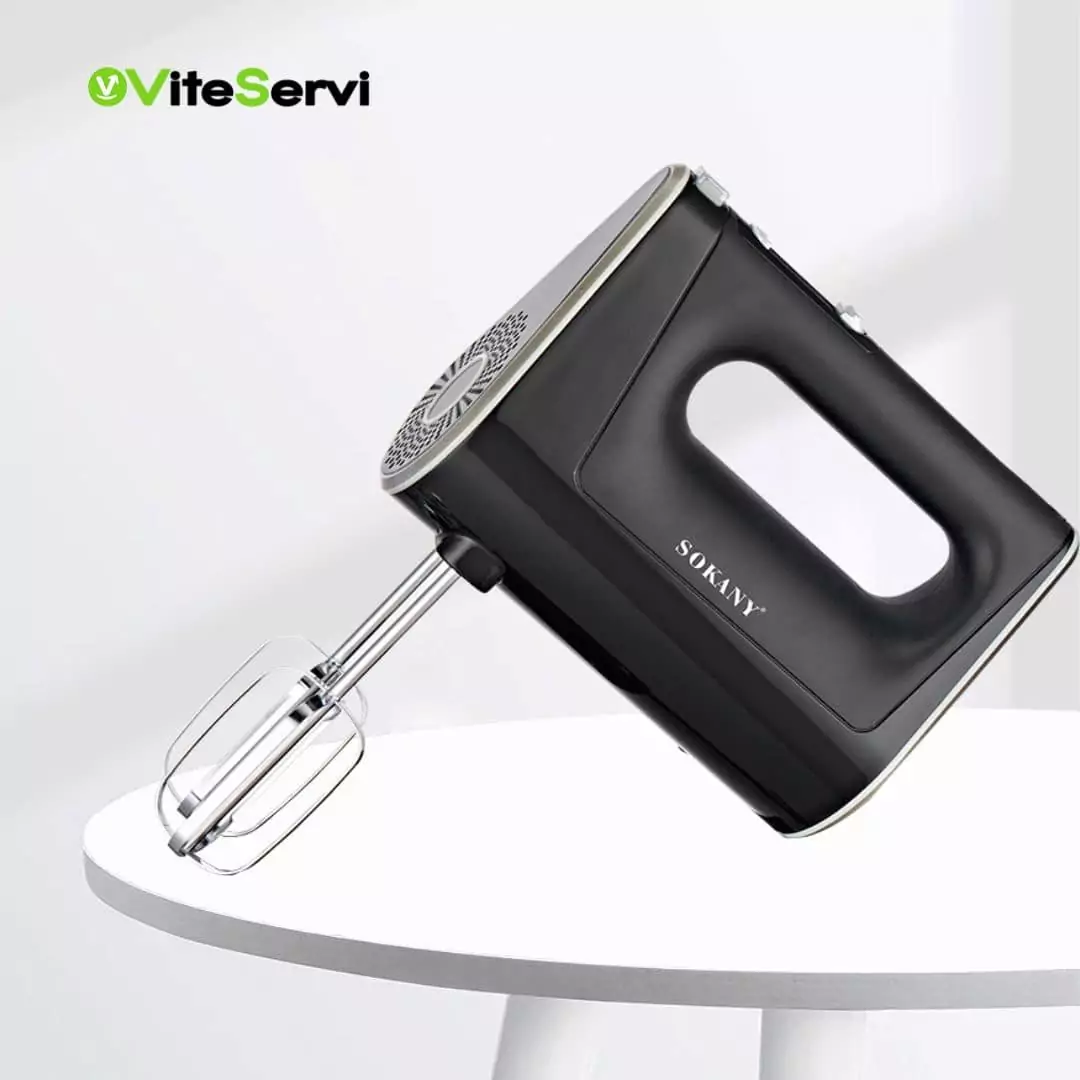 - Le Sokany hand mixeur blender sk6641 est un appareil de cuisine polyvalent qui vous permet de préparer des smoothies, des soupes, des sauces, des pâtes à gâteaux et bien plus encore. Avec une puissance de 800 W, ce mixeur est capable de traiter les ingrédients les plus durs en un rien de temps. Il dispose de 5 vitesses pour vous permettre de régler la puissance en fonction de vos besoins. Le niveau turbo supplémentaire vous permet de mélanger rapidement les ingrédients. Le mixeur est équipé d’un bouton d’éjection pour faciliter le changement des accessoires. Les accessoires comprennent 2 batteurs et 2 crochets pétrisseurs. Le mixeur est en acier inoxydable et peut être facilement nettoyé au lave-vaisselle.