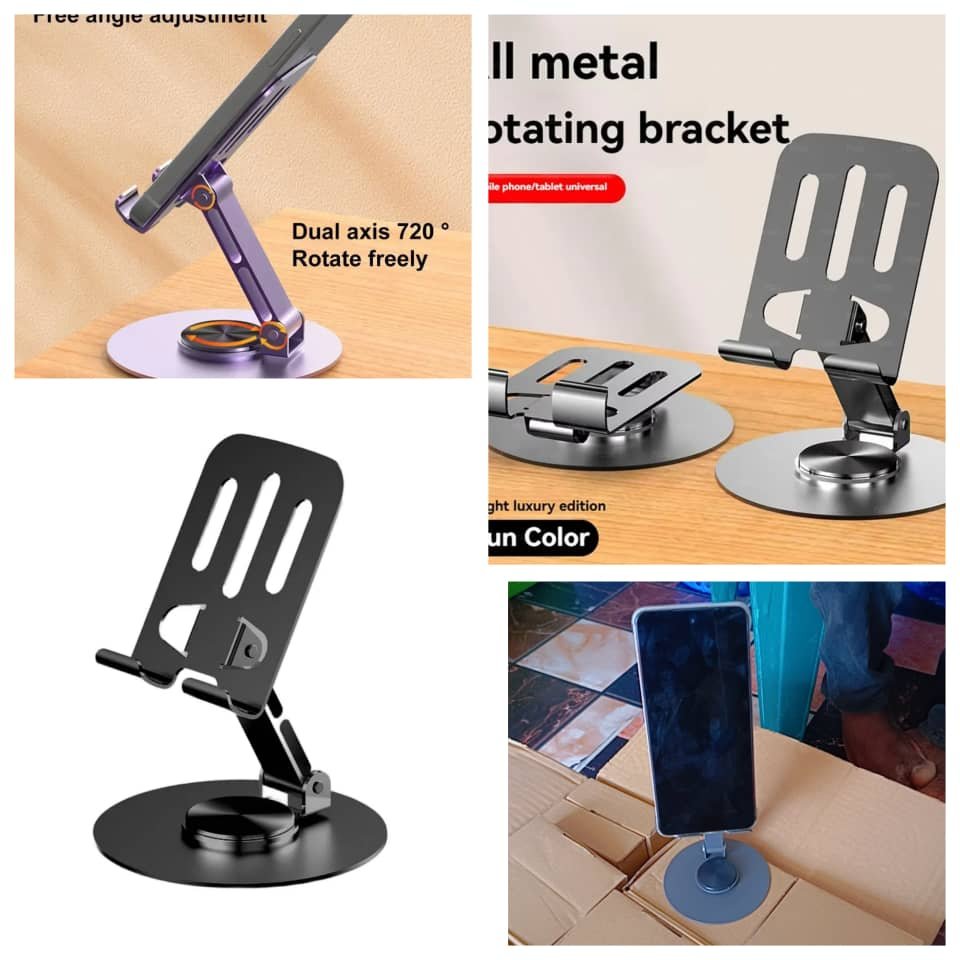 Pour le produit : Support Téléphone Tablette Rotatif Universel en Métal, Socle de Bureau Réglable 720° Double Axe pour Smartphone et Tablette, Pliable et Stable, Idéal pour Visionnage Mains-Libres et Travail