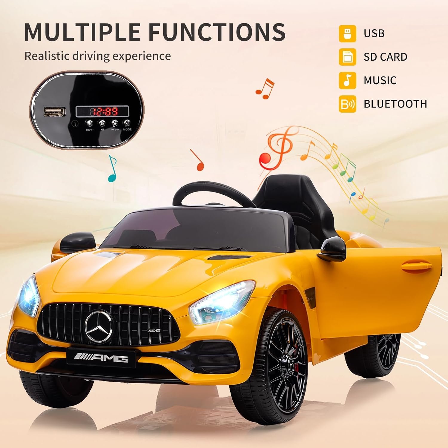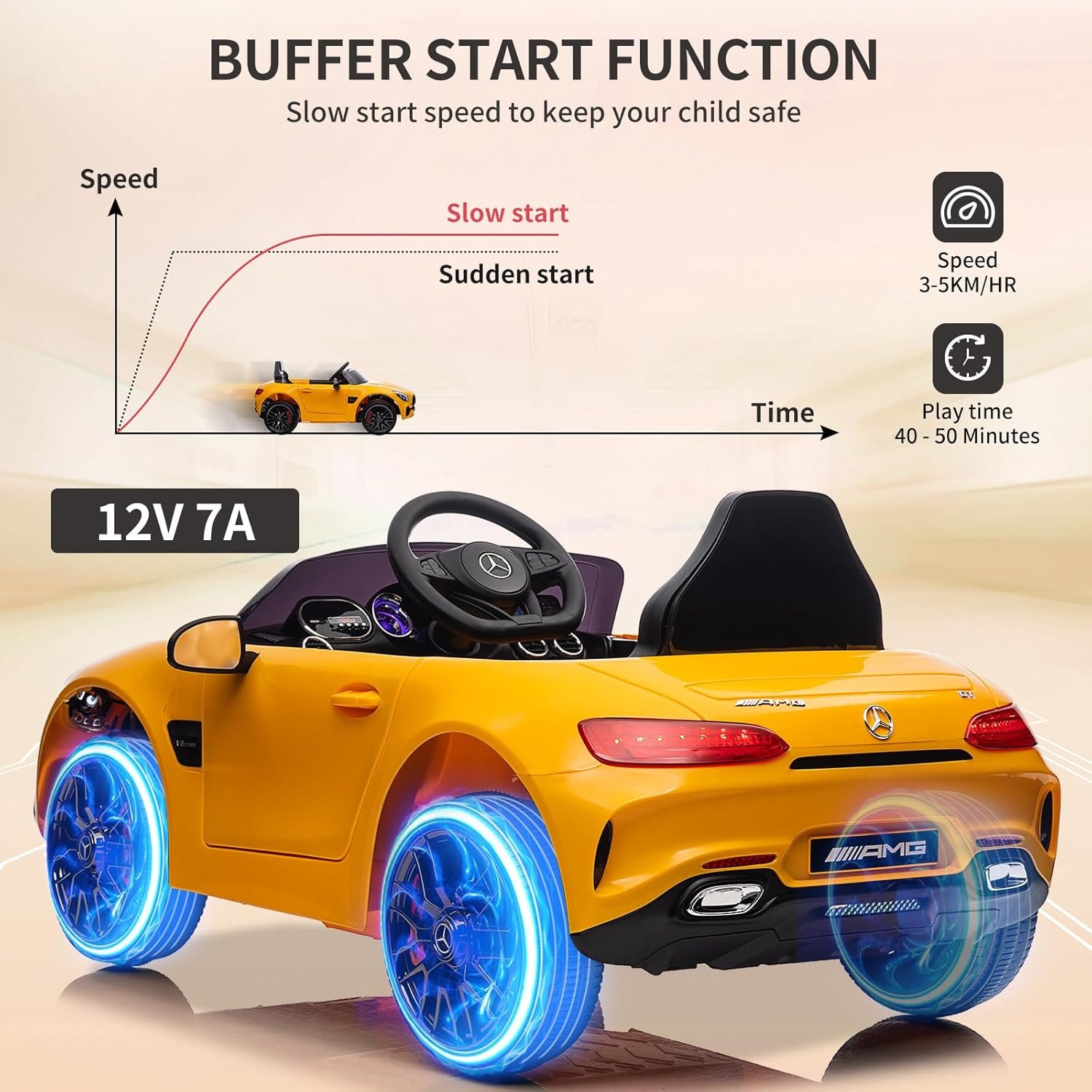 Pour le produit : Voiture électrique pour enfant Mercedes Benz AMG-GT Con licenza Voiture Electrique Enfant avec sécurité Enfant, Suspension, 3 Vitesses, lumières LED, klaxon, Giallo
